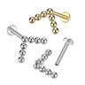 Titaniumlabret med en chevrontop af kugler, et trendy design. Chevrondesignet består af 7 kugler, der hver måler 2 mm. Begge sider måler 7,8 mm. Smykket fås i farverne guld og sølv.