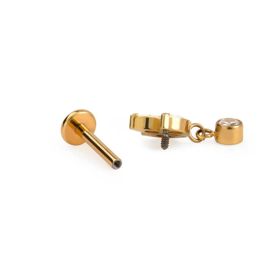 Smykket har indvendigt gevind, som gør det virkelig komfortabelt at isætte og fjerne, da den del, der går igennem din piercing, er helt glat. Det er lavet af titanium, som er allergivenligt, stærkt og ikke får pletter.