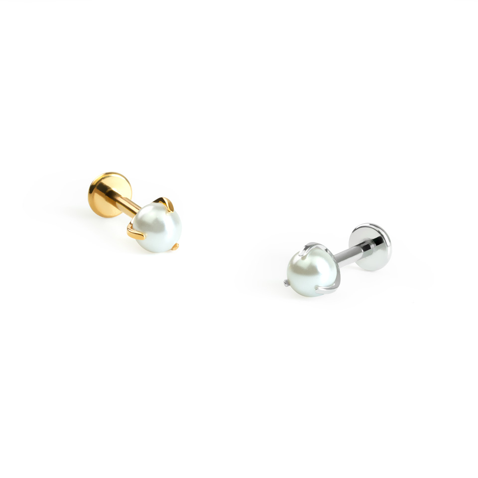 Syng din sirenesang med denne smarte perlelabret. Smykket er lavet af titanium, så det er holdbart og allergivenligt. Den 4 mm store kunstige perle, holdt fast med tre tænder, giver det perfekte touch af havets glimt.