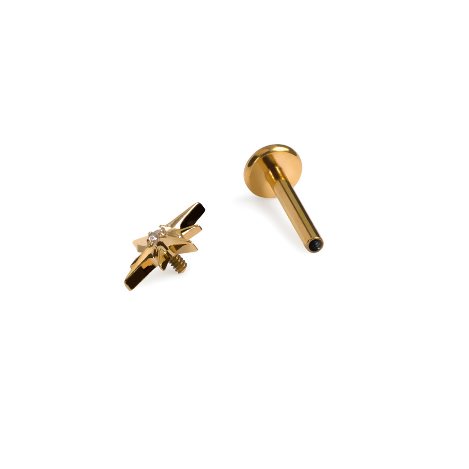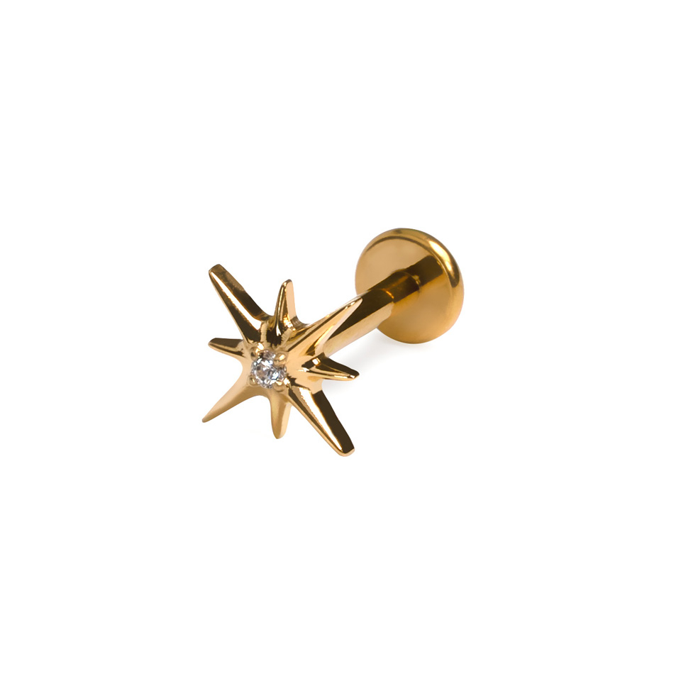Denne titaniumlabret med stjerne og sten i midten er lavet til dem, der kan lide smykker med lidt kosmisk dramatik. Det stjerneformede design indrammer en flot midtersten. Fås i farven guld eller sølv og føjer en fremtrædende detalje til enhver øre-stack.