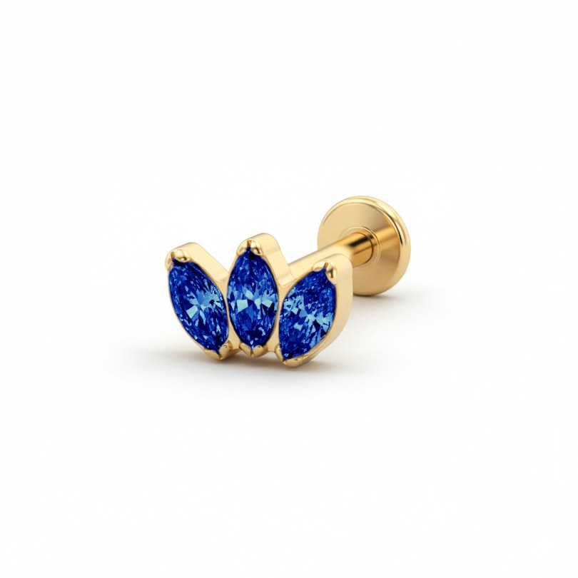 En titaniumlabret med trio af sten i et udvalg af farver, der beviser, at små detaljer kan ændre hele dit look. Tre tandsatte sten sidder tæt som en krone og giver din øre-stack et strejf af struktur.