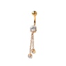 Ikke alle navlepiercingsmykker er skabt til at dreje hoveder, men denne titaniumnavlering med kæder og sten har forstået opgaven. En elegant titaniumstav med en glitrende sten, fuldendt med to fine kæder, der hænger ned og fanger lyset i hver bevægelse. Glamour med overskud, hvem kan sige nej til det?! Smykket er lavet af titanium (den allergivenlige, vandfaste og uforgængelige slags) og derfor holdbart nok til at følge dig gennem lange nætter og vovede påfund. Og takket være det indvendige gevind er det lige så brugervenligt, som det er stilfuldt, for det sidste du har brug for, når du bare gerne vil se godt ud, er bøvl og drama. Fås i farverne guld eller sølv, så vælg din favorit. Og med Bodymod Premiums perfekte fit føles smykket lige så godt, som det ser ud.