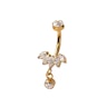 Designet? En buket af gnistrende marquise-skårne sten, der virkelig fremhæver din navle, fuldendt med et fint vedhæng, der fanger lyset, hver gang du bevæger dig. Smykket fås i farverne guld eller sølv, så du kan vælge den variant, der matcher din stil. Det indvendige gevind gør det let at tage på uden problemer, og vi anbefaler moderat brug pga. designet.