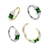Her er den opgradering, dine piercinger ikke vidste, at de havde brug for. Bodymod Premiums titaniumring med grøn sten i midten laver virkelig et statement. Et vovet, kvadratskåret fokuspunkt indrammet af skarpe, hvide trekanter, der fanger lyset fra alle vinkler. Præcis geometri med stærk kulør.