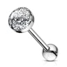 Der er hele 7 flotte klare farver at vælge imellem, som består af en hel masse farvede glimmerflager, der er samlet under en kuppel af klar plast. Netop fordi der er tale om glimmerflager, vil denne flotte tungepiercing glitre og glimte, når du taler eller åbner munden og lyset finder vej derind.