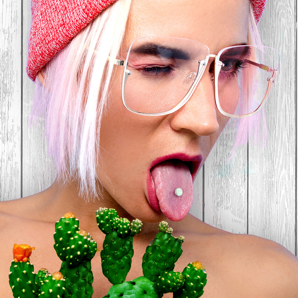 Blot fordi en tungepiercing er en af de mere skjulte og diskrete piercinger der fås, behøver den bestemt ikke være hverken kedelig eller triviel. Så stik tungen ud og tag imod denne lille flotte frækkert, som vil skabe masser af blikfang, med sin farvede og funklende opalsten.