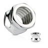 Tunnelen har, der hvor øret skal sidde, en fordybning, så møtrikkens kanter gør at den ikke falder ud af øret.