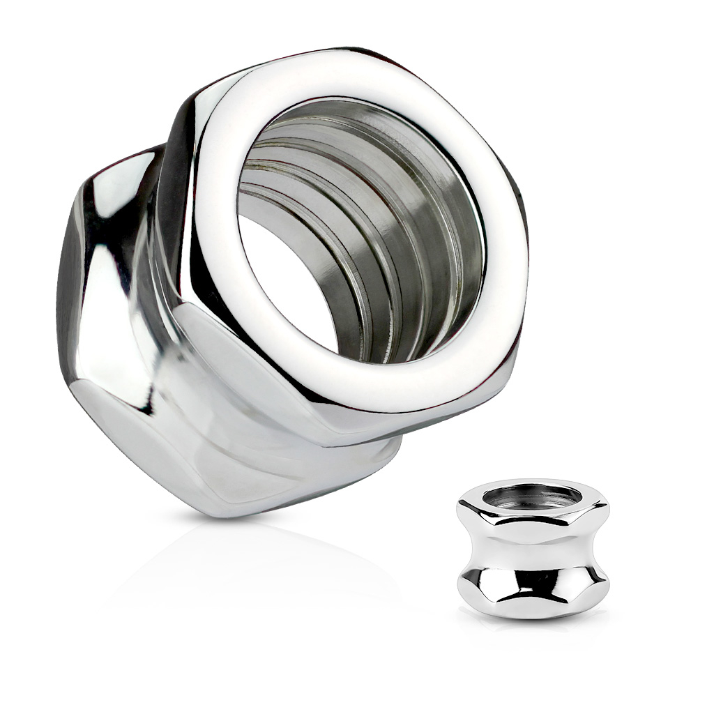 Tunnelen har, der hvor øret skal sidde, en fordybning, så møtrikkens kanter gør at den ikke falder ud af øret.