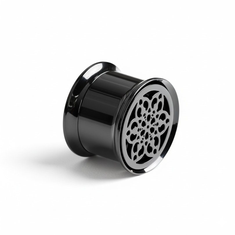 En tunnel med blomst af filigran giver et elegant twist til dine stretchings. En detaljeret blomsterudskæring pryder fronten og kombinerer dristigt design med fint håndværk i et look, der både er klassisk og cool.