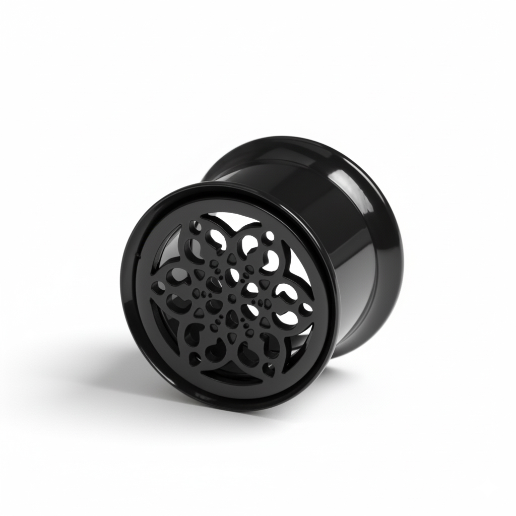 En tunnel med blomst af filigran giver et elegant twist til dine stretchings. En detaljeret blomsterudskæring pryder fronten og kombinerer dristigt design med fint håndværk i et look, der både er klassisk og cool.