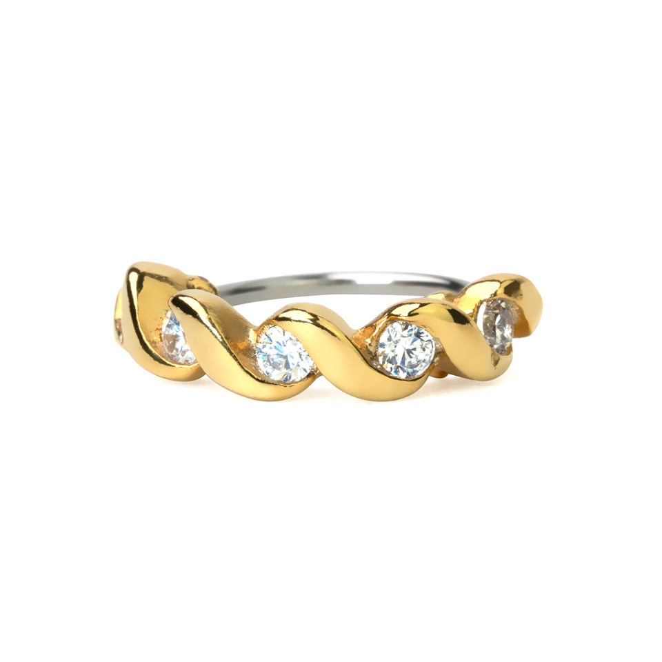 Den side af ringen, der er i kontakt med din hud, er lavet af kirurgisk stål, og dekorationen er lavet af messing. For at tage smykket på drejes det frem eller tilbage til en S-form, og så snart du har ført det igennem din piercing, lukker det af sig selv.