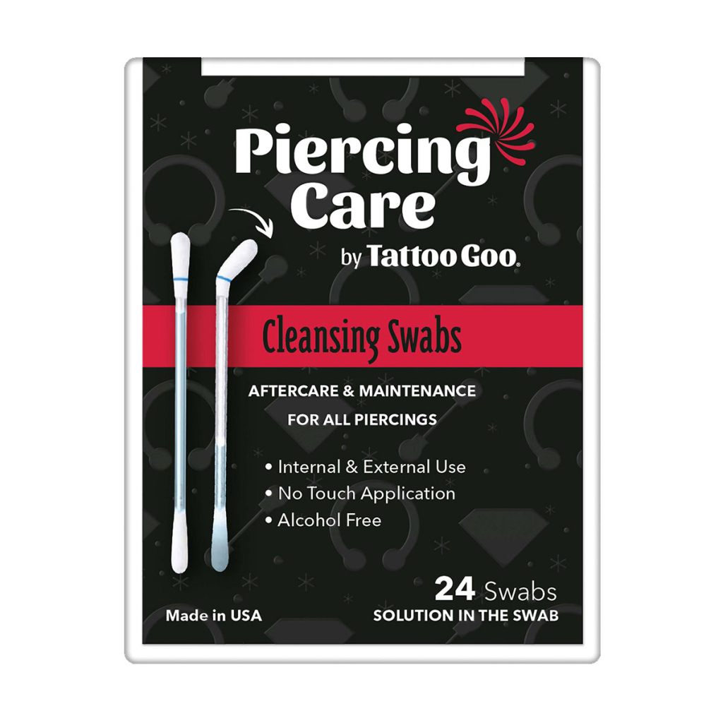 Mere skal der ikke til, før du har givet din piercing lidt omsorg. Der er ingen behov for at skylle efter, ingen behov for at bruge andre plejeprodukter eller lignende.